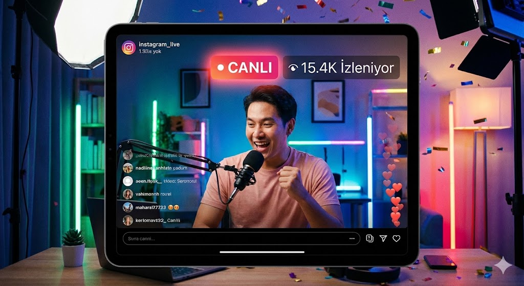 Algoritma Tetikleyici ve Keşfet Etkisi: Instagram algoritması, yüksek anlık izleyiciye sahip canlı yayınları "popüler ve trend" olarak işaretler. Bu sayede yayınınız, takipçilerinizin ana sayfasında ve ilgili kullanıcıların 'Keşfet' sekmesindeki 'Canlı Yayınlar' bölümünde en üst sıralarda gösterilir.
